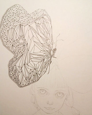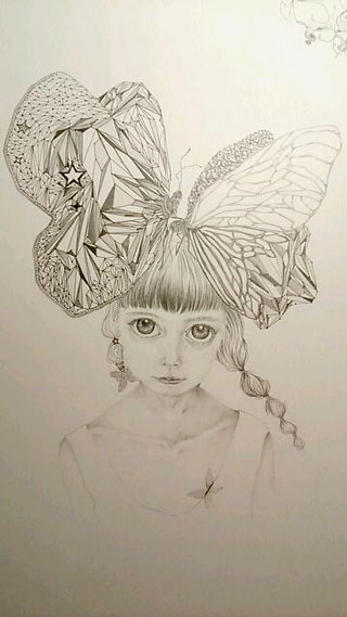 『1点は私の内面性の吐露、もう1点は単にチョウを描きたかったから。描き方や画材もその時の気分で変えます。』