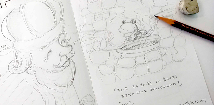 思いついたアイデアやキャラクターを掘り下げ、ストーリーの伏線やページ構成を確認しながら、絵本の「ミニラフ(ダミーブック)」まで仕上げます。