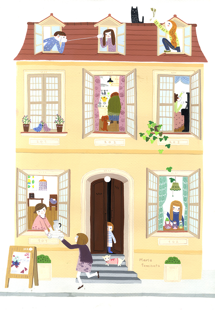 人々のちょっとしたやりとりが聞こえてきたり、気になる風景があると、メモをとってイラストに反映したりもしています。