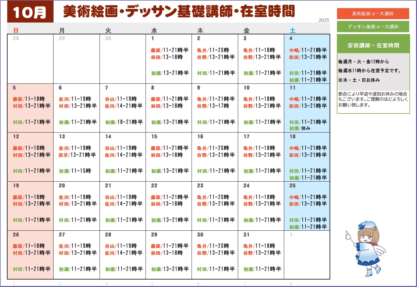 • 美術絵画コース2時間プランの方は受講いただけません。(2023年度以前の申込み)
